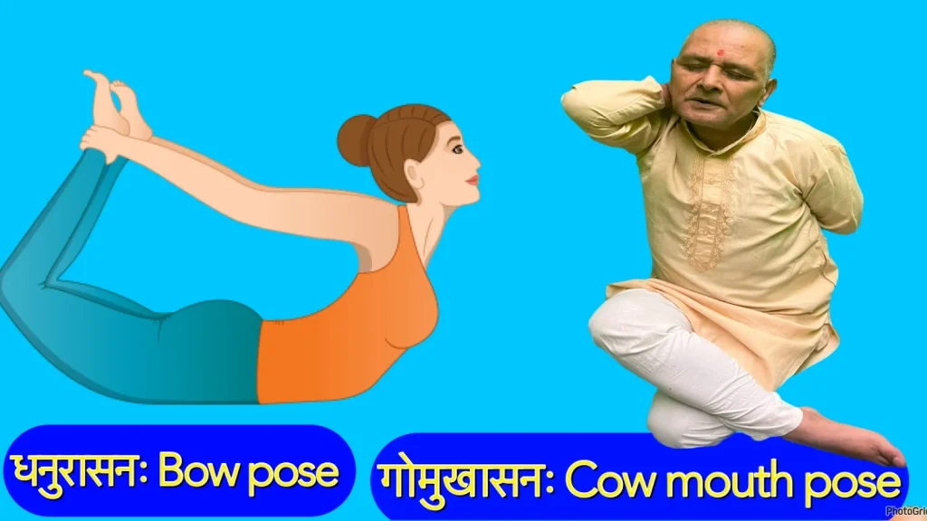 3: गोमुखासनः Cow mouth pos strech your entire body—your shoulders and arms, your ankles, hips, thighs and back. In the pose, the folded legs are called physical poses designed to strengthen and stretch the body. They also promote balance, alignment, and relaxation. Examples include tree pose, cow and cat pose, and child’s pos. Pranayama ( Breath control )is considered the life force (prana), and controlling it is believed to help control the mind and body.